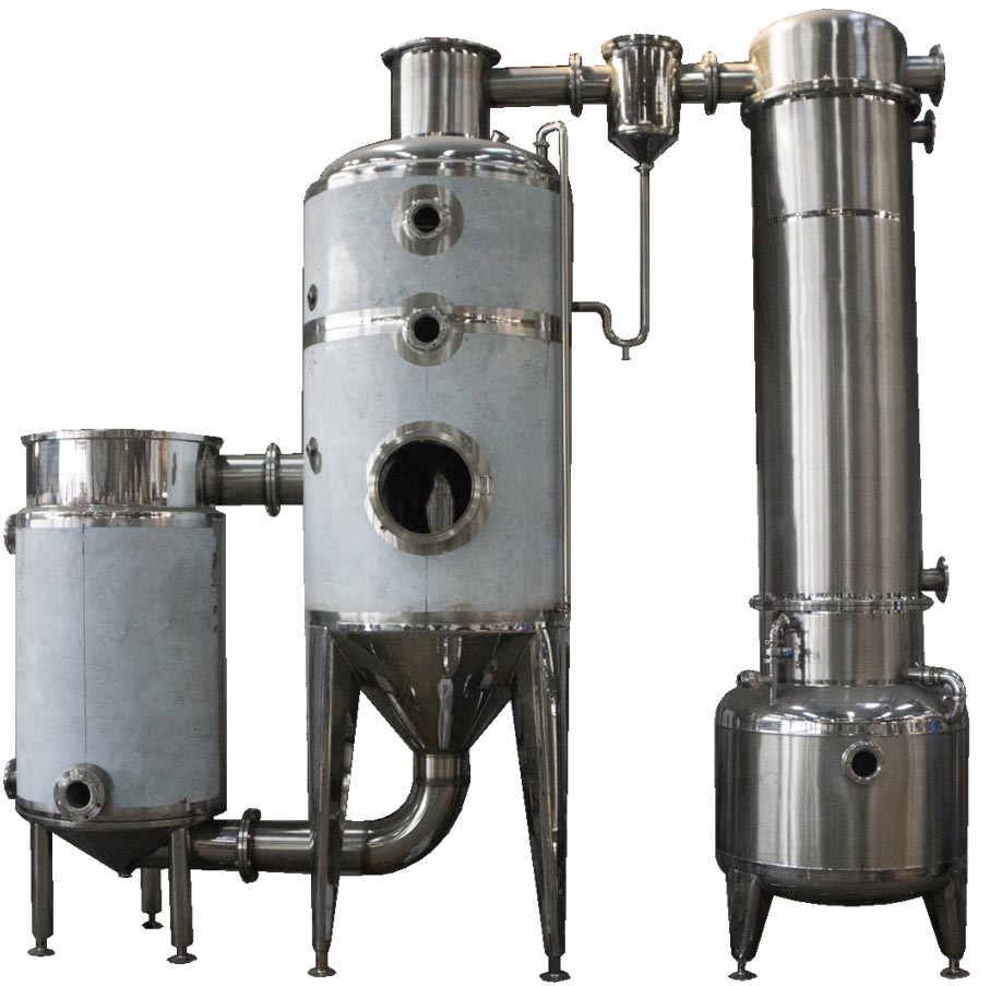 2 、濃縮液料:本設備采用外加熱自然型循環(huán)式與真空負壓蒸發(fā)方式,蒸發(fā)速度快,濃縮比重可達 1.3 ;液料在全密封狀態(tài)無泡沫濃縮,